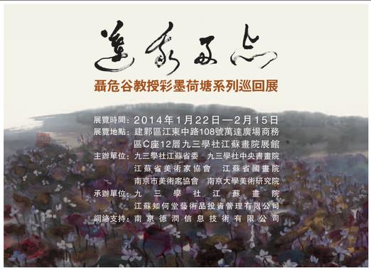 应佛光山祖庭盛情相邀,山水环绕的宜兴大觉寺不久前举办了“莲我两忘——聂危谷彩墨荷塘系列巡展”,圆满落幕刚刚返回南京,又将于元月22日结缘九三学社江苏画院,再度拉开了展览的帷幕。